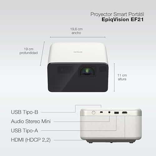 Epson EpiqVision Mini EF21 Portable Smart Laser Projector, Bright 1,000 Lumens, FHD 1080p HDR, 3-Chip 3LCD, Google TV, Netflix, Stereo Speakers, Family Party/Outdoor Backyard/Home Theater – White